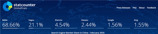 I nogle lande er andre søgemaskiner end Google dominerende. I Kina er det således Baidu, der er langt den mest dominerende med næsten 70% af markedet, som du kan se nedenfor. I Rusland har Yandex tæt på 50% af markedet.